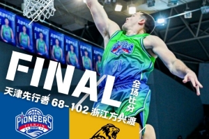 末節(jié)比賽,谷澤浴助攻雷諾茲完成雙手暴扣提振士氣,蔣祺禹里突外投連得5分,賴俊豪、蔣祺禹接連命中三分,何思雨助攻詹姆斯上籃得手,球隊一度打出14-2的反擊高潮。隨后詹姆斯突破得分,并助攻何思雨上籃命中,賴俊豪二次進(jìn)攻得手,蔣祺禹3分再中。全場比賽結(jié)束,天津先行者最終68-102不敵浙江方興渡。