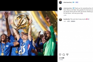 桑切斯曬出自己同馬雷斯卡在世俱杯奪冠后的慶祝同框圖,并配文:“恩佐(馬雷斯卡的名字也是恩佐)、麥基、威利、丹尼、馬科斯和羅比(后幾個名字均是馬雷斯卡教練組成員的昵稱),謝謝你們的一切?!?/p>