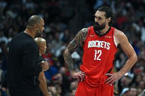 據(jù)火箭主帥烏度卡賽前透露,亞當(dāng)斯(腳踝傷勢)、卡佩拉(生?。⑷毕緢霰荣悺?/p>