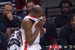 GIF-杜蘭特被砸臉后爆粗