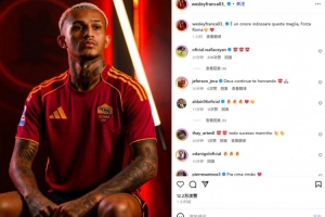 韋斯利曬出自己身披羅馬球衣的定妝照,并配文:“很榮幸能夠穿上這件球衣,羅馬加油!”