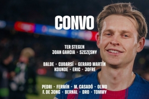 體育資訊1月3日訊 北京時間明天凌晨4點,巴薩將在西甲第18輪比賽中客場對陣西班牙人。巴薩公布了此役的球員名單。佩德里、奧爾莫在列,阿勞霍繼續(xù)缺席。