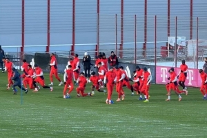 體育資訊1月3日訊 據(jù)記者Kerry Hau報道,穆西亞拉參加拜仁訓(xùn)練之前的熱身。