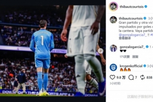 皇馬門將庫(kù)爾圖瓦社媒曬出比賽照片,配文:“精彩的比賽,我們青訓(xùn)球員的進(jìn)球帶來(lái)的又一場(chǎng)勝利?!?/p>