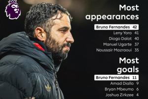 體育資訊01月05日訊 在阿莫林下課后,英超官方曬出了阿莫林執(zhí)教期間,曼聯(lián)球員的各項(xiàng)數(shù)據(jù),B費(fèi)在出場(chǎng)數(shù)、進(jìn)球數(shù)、助攻數(shù)上都是最多的。