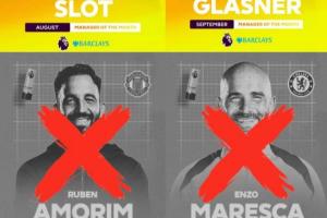 本賽季英超已頒發(fā)四座月度最佳主教練的獎(jiǎng)杯,其中11月得主馬雷斯卡于元旦當(dāng)天下課,而10月最佳得主阿莫林于1月5日下課。