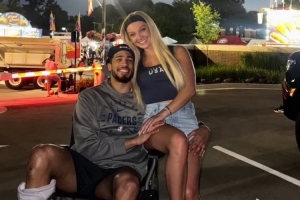 體育資訊7月5日訊 當(dāng)?shù)貢r(shí)間7月4日是美國(guó)獨(dú)立日,哈利伯頓和女友Jade在室外觀看煙花秀慶祝節(jié)日。