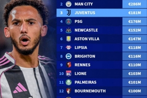 3、尤文圖斯,1.81億歐元