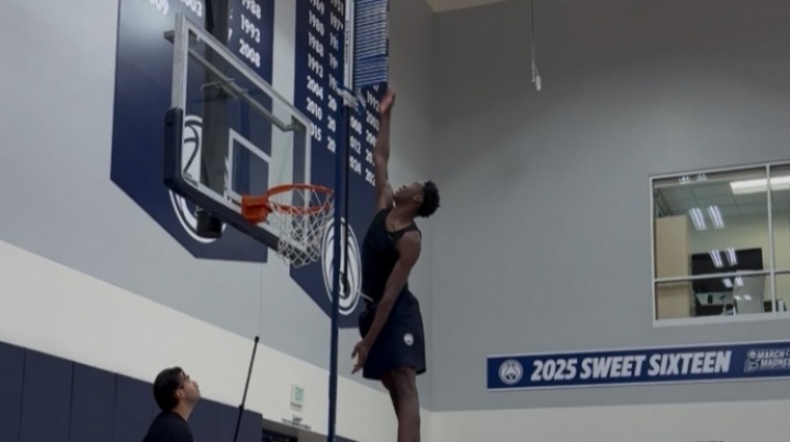 迪班薩,26屆狀元大熱,身高2米06,臂展2米13,楊百翰大學(xué)給出的彈跳數(shù)據(jù)是42英寸(1米07)