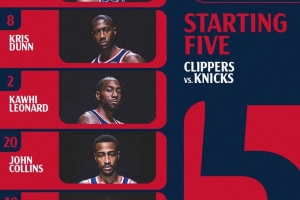 快船首發(fā):哈登、鄧恩、小卡、科林斯、祖巴茨