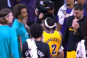 體育資訊1月8日訊 NBA常規(guī)賽,湖人91-107不敵馬刺。賽后,湖人球員范德比爾特和馬刺球員索漢之間發(fā)生了沖突。