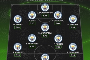 體育資訊1月9日訊 多方消息確認(rèn)塞梅尼奧將加盟曼城,whoscored預(yù)測了曼城的主力陣容并附上本賽季英超場均評分。