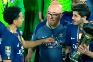 賽后慶祝時(shí)發(fā)生了有趣的一幕,隊(duì)友們輪流捧起獎(jiǎng)杯,而巴黎邊衛(wèi)努諾·門德斯與資深裝備管理員納賽爾丁開玩笑,多次把后者的光頭當(dāng)作獎(jiǎng)杯捧起。