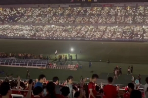 當(dāng)體育場(chǎng)被紅白燈光照亮?xí)r,利物浦傳奇伊恩-拉什走上球場(chǎng),獻(xiàn)上鮮花,以紀(jì)念迪奧戈-若塔和安德烈-席爾瓦。