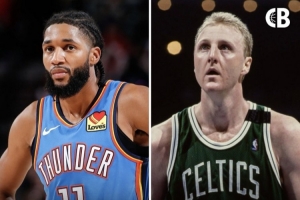 雷霆球員以賽亞·喬目前生涯出場(chǎng)350場(chǎng),三分球1618投651中,三分命中率為40.2%。而綠軍名宿拉里·伯德生涯出場(chǎng)897場(chǎng),三分球1727投649中,三分命中率為37.6%。
