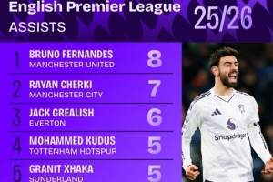 體育資訊1月10日訊 數(shù)據(jù)機(jī)構(gòu)squawka統(tǒng)計(jì)了本賽季英超助攻情況,B費(fèi)居首。