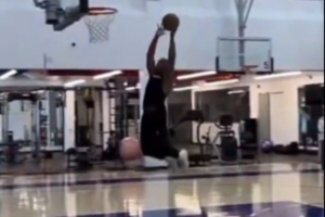 據(jù)快船隨隊記者Law Murray報道,克里斯·保羅在洛杉磯Playa Vista的老快船訓練基地練習扣籃。