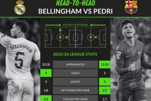 體育資訊1月12日訊 皇馬和巴薩將在本輪西超杯決賽相逢,whoscored也對(duì)比了兩隊(duì)中場(chǎng)核心的西甲關(guān)鍵數(shù)據(jù)。