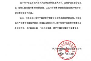 體育資訊07月31日訊 此前遭足協(xié)禁賽兩年,四川青年競技俱樂部發(fā)布公告表示已經(jīng)向中國體育仲裁委員會提起仲裁申請,請求撤銷該處罰決定。