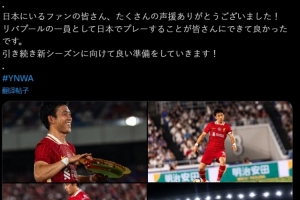 體育資訊7月31日訊 不久前,隨利物浦結束日本行的遠藤航更新了社交媒體,感謝了日本球迷。
