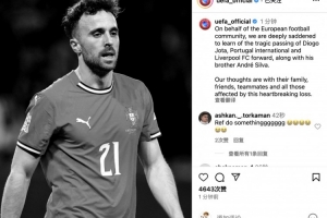 體育資訊7月3日訊 利物浦前鋒若塔因車禍不幸離世,歐足聯(lián)官方社媒發(fā)文哀悼。