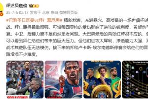 體育資訊07月06日訊 世俱杯1/4決賽,巴黎2-0淘汰拜仁,詹俊發(fā)文點評了本場比賽。