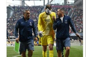 拜仁vs巴黎比賽上半場,穆西亞拉因多納魯馬的撲救動(dòng)作腳踝變形,受到重傷。