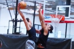視頻中,布萊恩特以一個(gè)戰(zhàn)斧隔扣開(kāi)場(chǎng),非常炸裂。