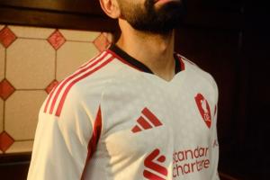 客場(chǎng)球衣則延續(xù)利物浦經(jīng)典的客場(chǎng)配色,以奶油白為主色,綴以黑紅雙色細(xì)節(jié)作為點(diǎn)睛。隊(duì)徽創(chuàng)新采用盾形框架設(shè)計(jì),利弗鳥坐落于盾牌之中,其輪廓靈感源自1906年安菲爾德主看臺(tái)建筑結(jié)構(gòu),通過(guò)當(dāng)代手法重構(gòu)歷史圖騰??蛨?chǎng)球衣有兩套搭配方案——黑色球褲搭配奶油白球襪與奶油白球褲搭配黑色球襪,滿足多元風(fēng)格表達(dá)