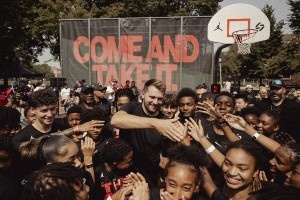 在比賽開始前,東契奇特地抽出時間會見了本地參賽的年輕球員,并親自送上球鞋,現(xiàn)場氣氛十分熱烈。