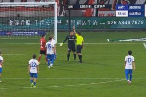 體育資訊08月02日訊 泰山vs蓉城第58分鐘,王大雷出擊到禁區(qū)外放倒費利佩,主裁判一開始判罰黃牌,VAR介入后,主裁判親自看回放后改為紅牌,將王大雷罰下!