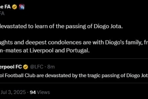 體育資訊7月3日訊 利物浦球員迪奧戈-若塔今天因車禍離世,英足總隨后發(fā)文悼念。
