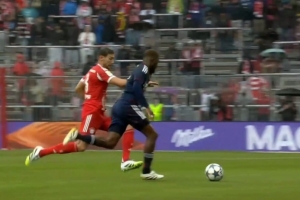 第37分鐘,拜仁的任意球長(zhǎng)傳被門(mén)將德尚沒(méi)收?!?/p>
