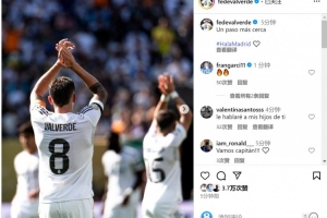 巴爾韋德為皇馬踢滿全場(chǎng),賽后他在社交媒體上曬出謝場(chǎng)照片,配文:“又近一步。”