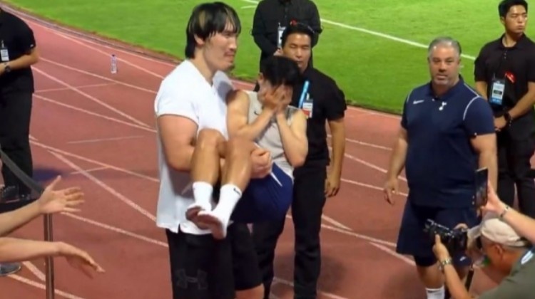 嬌羞孫哥??孫興慜被韓國2米18格斗明星公主抱,害羞得捂臉