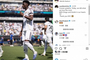瓊阿梅尼此役為皇馬首發(fā)出戰(zhàn),他在社交媒體上寫道:“永遠(yuǎn)感恩,今天我們做了自己最為熱愛的事情,迪奧戈(若塔)和安德烈在我們心中。謝謝紐約。”