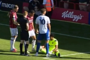 比賽尾聲階段,沃爾索爾門將羅伯茨疑似小腿受傷倒地,此時(shí)看臺(tái)上有球迷向門將投擲雜物,進(jìn)球功臣巴雷特?fù)炱鹞锲方唤o裁判,而賽后斯文登主帥霍洛威對(duì)此暴怒不已。