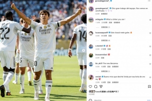 本場比賽貢薩洛-加西亞再次破門,本屆賽事5場貢獻(xiàn)4球1助攻,賽后他在個人社媒曬出慶祝照片,配文寫道:“球隊再次拿出出色表現(xiàn),我們半決賽見!”
