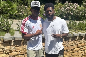 體育資訊7月6日訊 巴薩邊鋒亞馬爾身穿曼聯(lián)球衣與球迷合影。