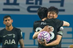 賽前,韓國(guó)知名演員樸敘俊擔(dān)任嘉賓,為本場(chǎng)比賽開(kāi)球,隨后與熱刺隊(duì)長(zhǎng)、韓國(guó)球星孫興慜微笑擁抱。