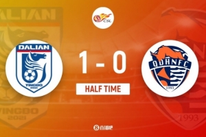 半場(chǎng)-大連英博1-0青島海牛 呂焯毅精彩弧線助攻拉布亞德鏟射破門(mén)
