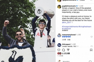 維卡里奧寫道:孫興慜是一個傳奇。他是我們俱樂部歷史上最偉大的球員之一,更重要的是,他是個頂級的好友。