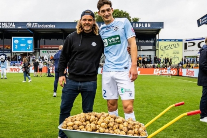【戰(zhàn)利品55kg土豆??】 ????丹麥超級(jí)聯(lián)賽S?nderjyske在3-2戰(zhàn)勝FC Nordsj?lland的比賽中,全場(chǎng)最佳球員的獎(jiǎng)品是一整袋55kg的土豆!