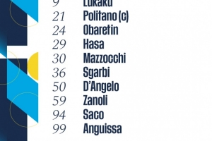 1-梅雷特、9-盧卡庫、21-波利塔諾、24-M-奧巴瑞汀、29-哈薩、30-馬佐基、36-洛倫佐-斯加爾比、50-丹杰洛、59-扎諾利、94-薩科、99-安古伊薩
