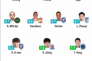 數(shù)據(jù)平臺(tái)Sofascore對(duì)本輪中超最佳球員進(jìn)行評(píng)選,其中玉昆、三鎮(zhèn)和浙江隊(duì)各有2將入選,米特里策、費(fèi)利佩等入選。