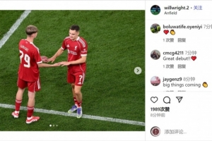 體育資訊8月5日訊 利物浦新援威爾-賴特更新社媒動態(tài),曬出在熱身賽中替補(bǔ)出場的照片。