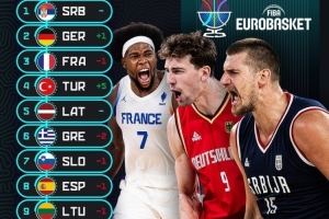 體育資訊8月5日訊 今天,男籃歐錦賽官推公布了新一期的實(shí)力榜,塞爾維亞、德國(guó)和法國(guó)前三。