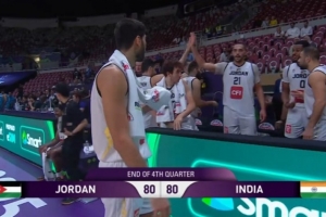 隨著印度最后強行出手三分不中,雙方常規(guī)時間結(jié)束時戰(zhàn)成了80-80,進入加時賽!