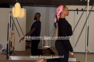 薩瓦娜轉(zhuǎn)發(fā)了一位位于洛杉磯的普拉提教練的動態(tài),后者曬出了她指導(dǎo)詹姆斯夫婦練習(xí)普拉提的片段。