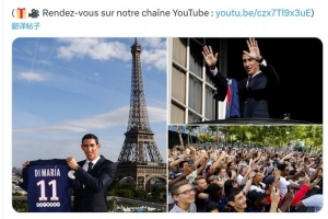 2015年8月6日,迪馬利亞以6300萬歐轉(zhuǎn)會費從曼聯(lián)加盟巴黎,巴黎官方社媒曬出迪馬利亞加盟時的照片,回顧那個特別的日子。